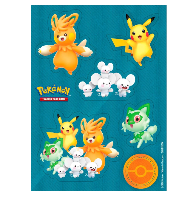 - 7 Foil promo kaarten met Pikachu, Sprigatito, Pawmi, Pawmo, Pawmot, Tandemaus en Maushold